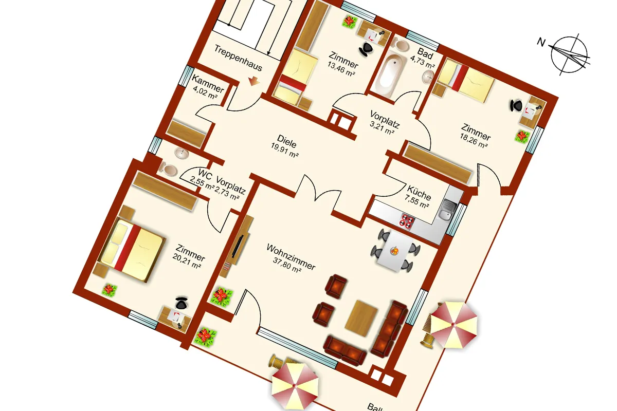 ऊपर से एक दृश्य अक्सर एक साधारण फ्लोर प्लान से कहीं अधिक दिखाता है और संपत्ति और आसपास का एक बेहतरीन ओवरव्यू प्रदान करता है। हमारा सेवा प्रदाता इस उद्देश्य के लिए हमारी संपत्तियों की पेशेवर ड्रोन तस्वीरें खींचता है।