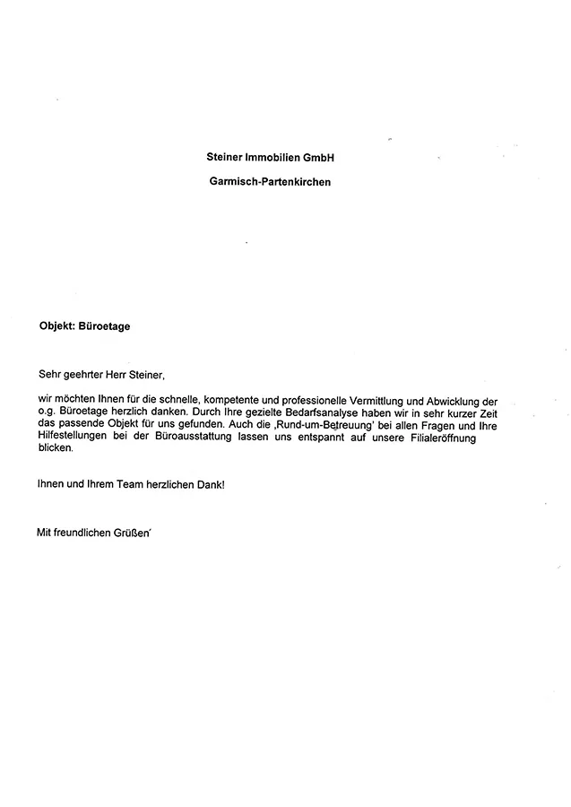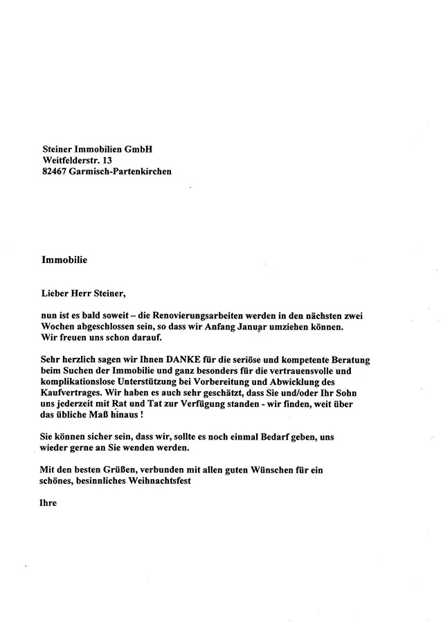 ... We are very pleased to have met you personally with your family and hereby also "Steiner IMMOBILIEN GmbH" as an extremely reliable partner for the purchase of real estate ...