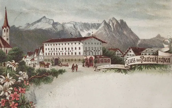 Der erste Immobilienkaufmann unserer Familie war Andreas Steiner (Foto rechts), der bereits ab ungefähr 1884 Hotels und Gaststätten im bayerischen, fränkischen und schweizer Bodensee-Raum ersteigerte, gekauft und wieder verkauft hat. Hierzu gehörten beispielsweise das Hotel Mohren am Mohrenplatz in Oberstdorf, (links unten von 1909) und das Posthotel in Partenkirchen (Foto rechts unten von 1910).